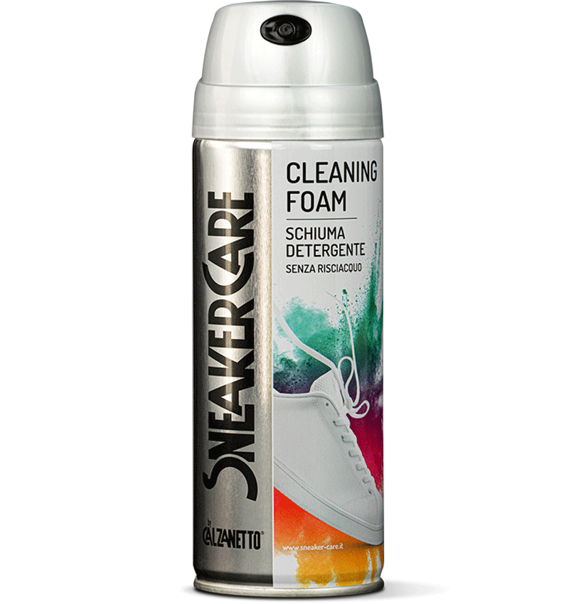 La schiuma detergente Sneaker Care è adatta per la pulizia delle scarpe sportive di qualsiasi colore e materiale.